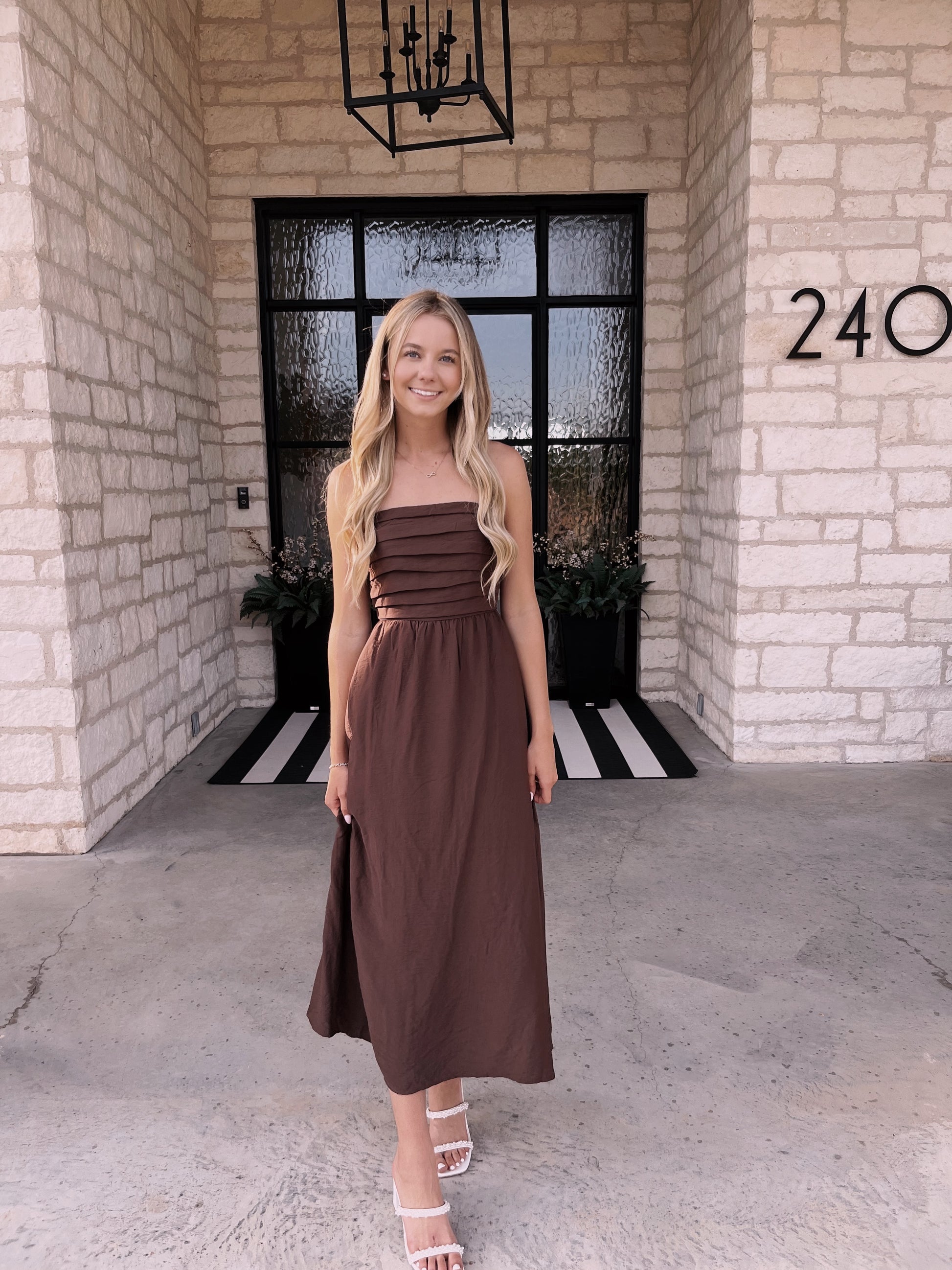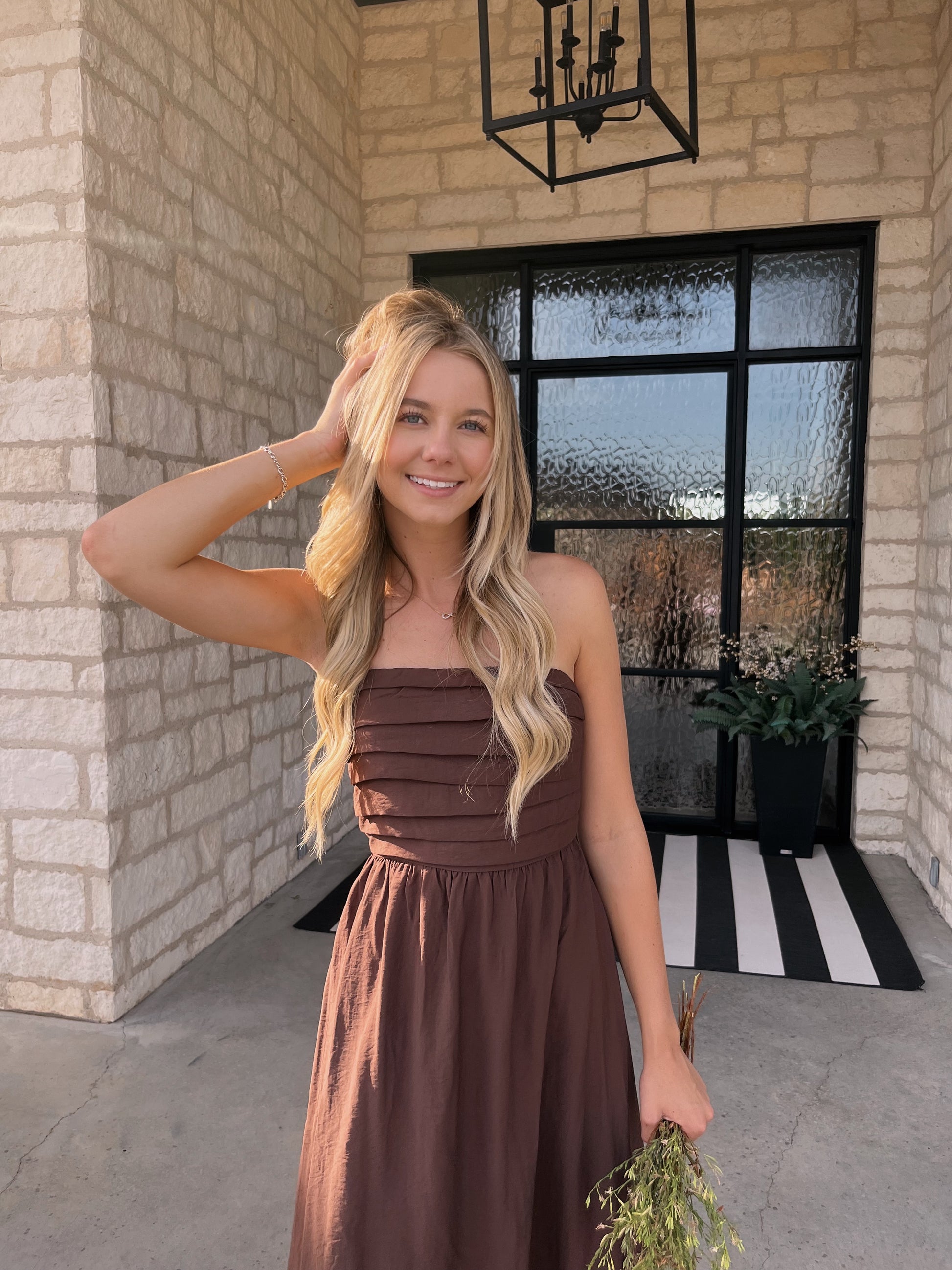 This dress is beautiful beyond words. She would be so cute for the beach or any date night. It features pleated front bodice, back smocked bodice, and lining to the knees. She’s so simple but oh so stunning!