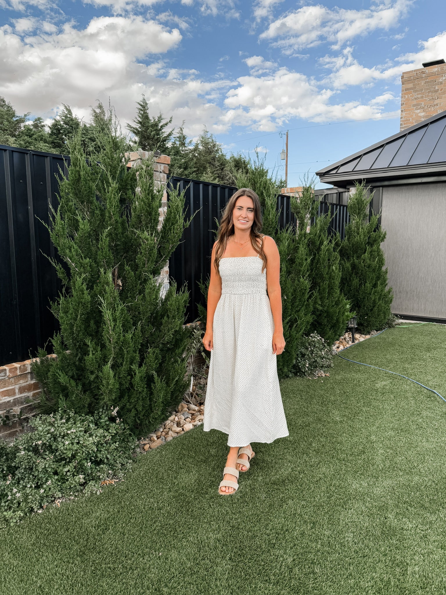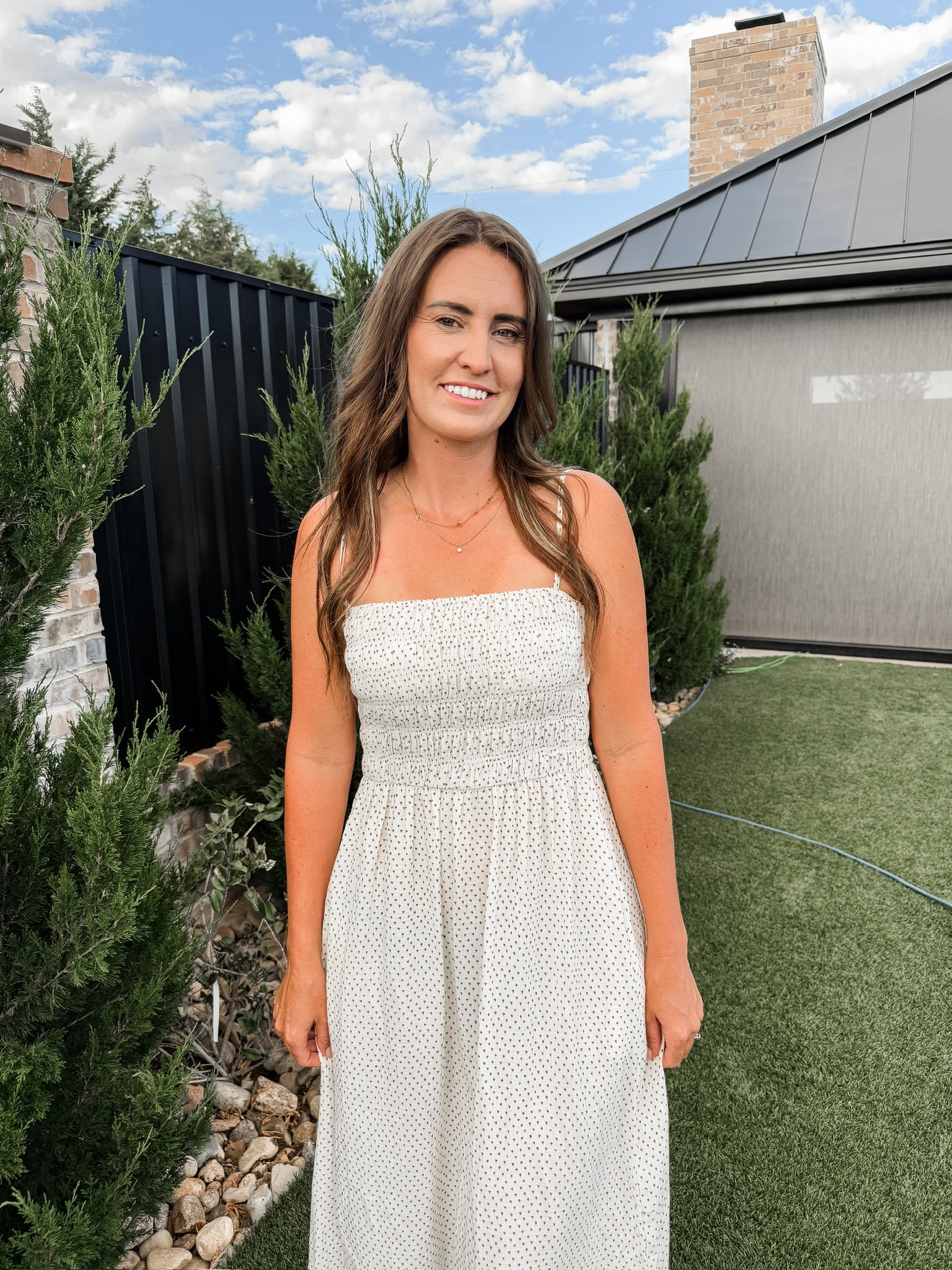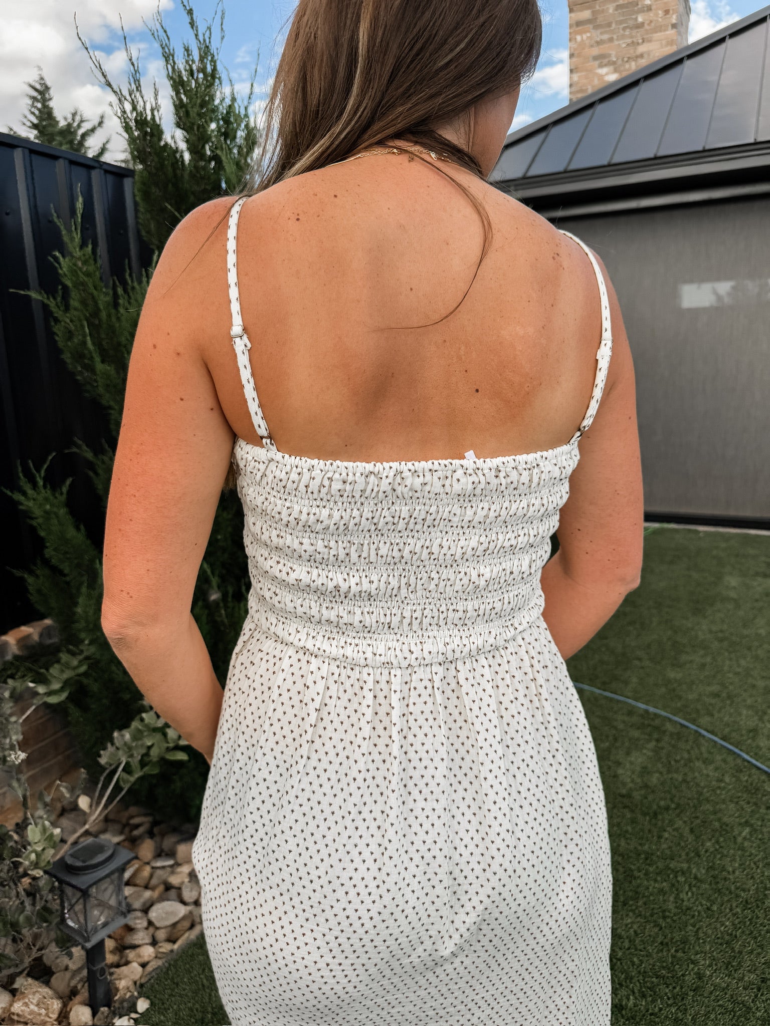 This 100% cotton dress is seriously one of our softest most comfortable dresses. It features adjustable straps and a stretchy smocked bust.